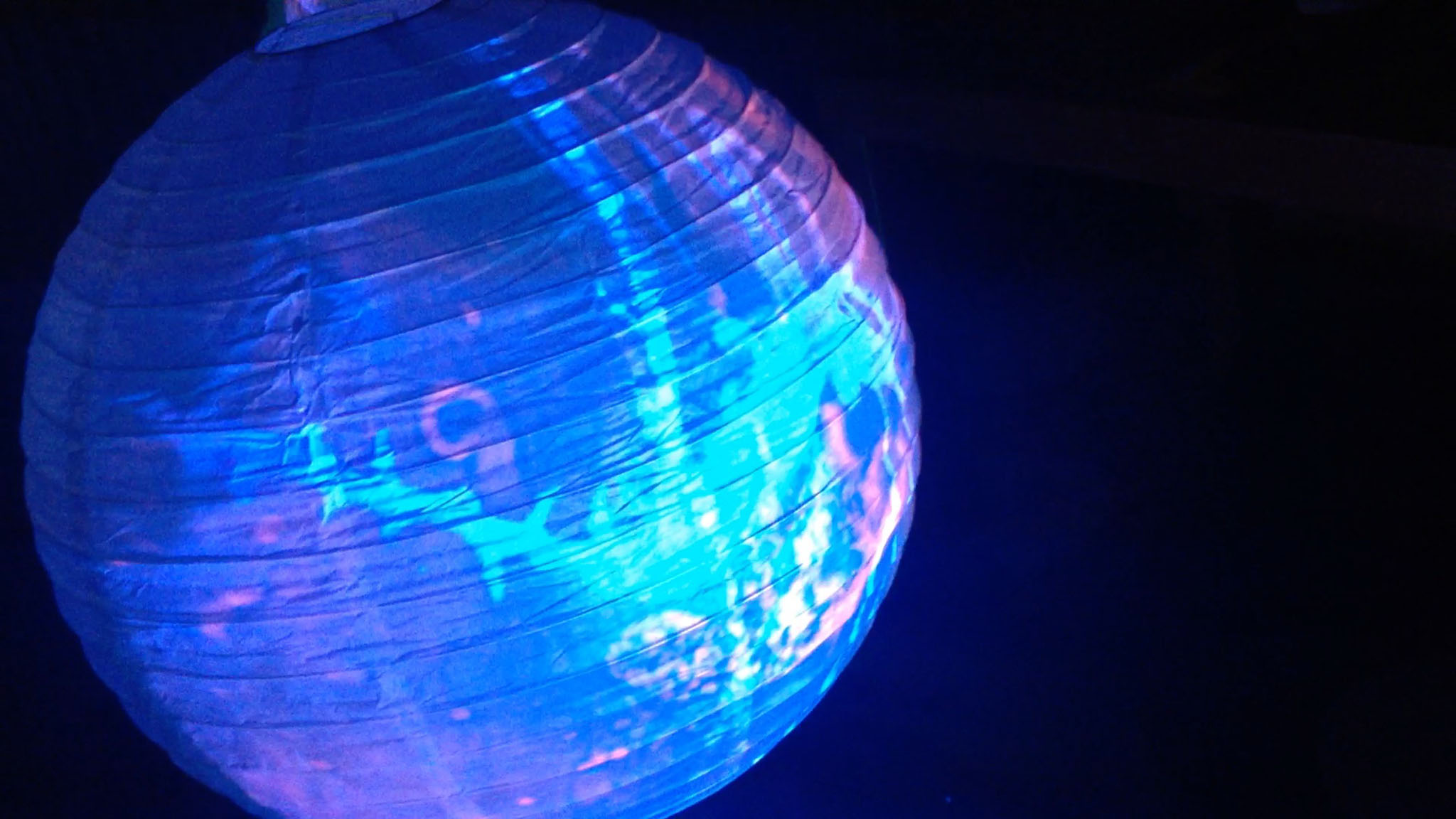 We have decided to project onto around 4 or 5 spheres which will be hanging from the roof above the audience and project onto them. In my last project I used a polystyrene sphere, which was perfect for projecting onto, although to purchase 4 or 5 of these would be very expensive. Alice suggested paper or Chinese lanterns as a cheaper alternative. I spent a fair old while trekking round shops to find something that was: white, inexpensive and relatively large. I thought this would be easy, but I was very wrong. Finally I discovered that Wilkinson’s (a home goods store) sells them for about £4.50 each, white and they are 20″ in diameter, which I hope will be large enough for the venue.