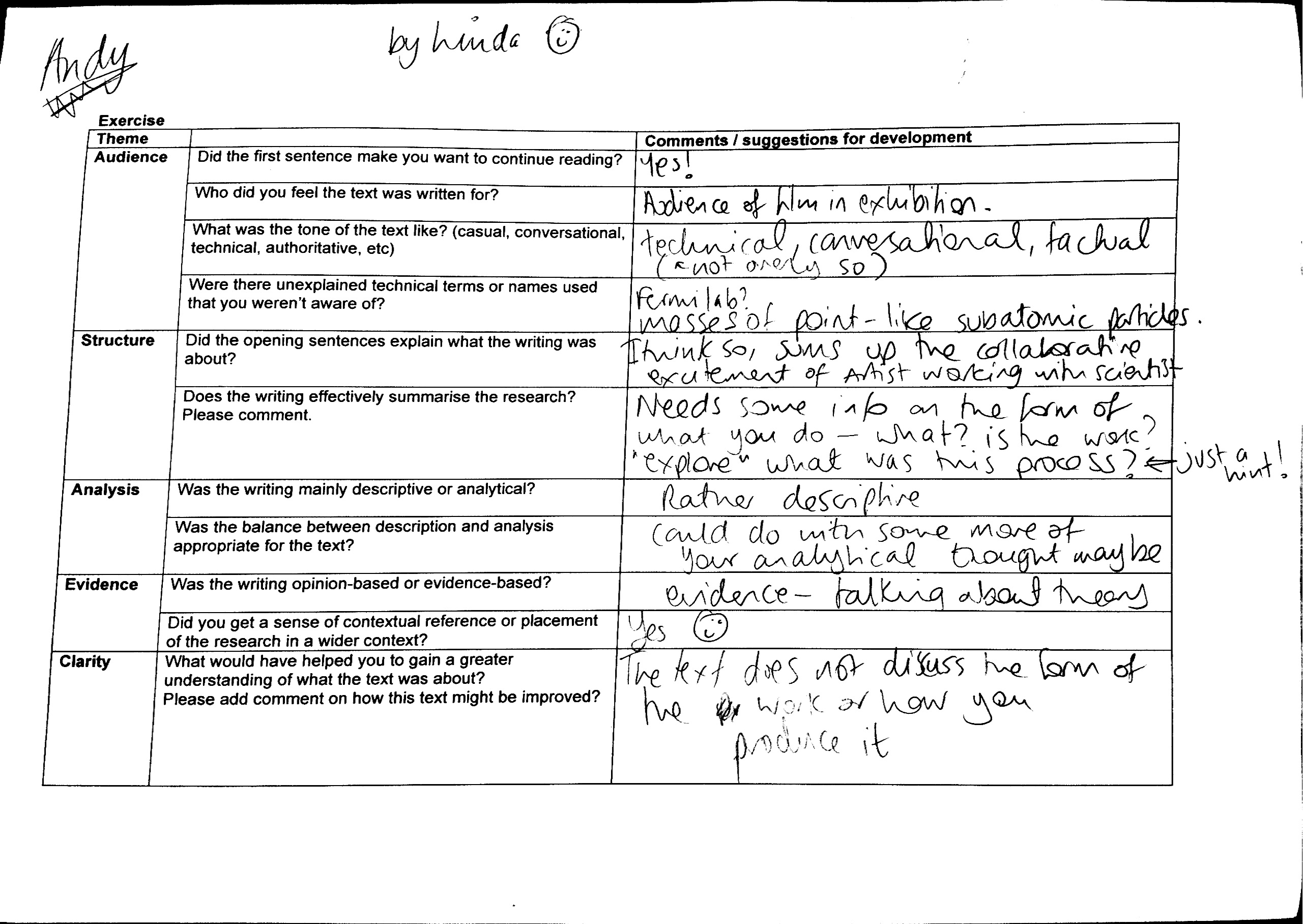 At this stage you can prepare for this in a number of ways. Bullet points of key areas to mention, and/or text taken from your Masters proposals are both good ways to start. In the workshop we will look at ways that you can develop or refine your statements.